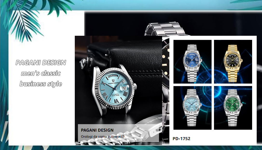 - Men's automatic movement with a 42-hour power reserve, featuring automatic winding and date display. Water-resistant to 100 meters, this robust and durable timepiece combines sporty and business-casual styling with exceptional value.